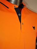 Bright Orange/ Navy Blue- Collar, Sleeve, Logo, Placket