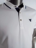 White/ Navy Blue- Collar, Sleeve, Placket, Logo